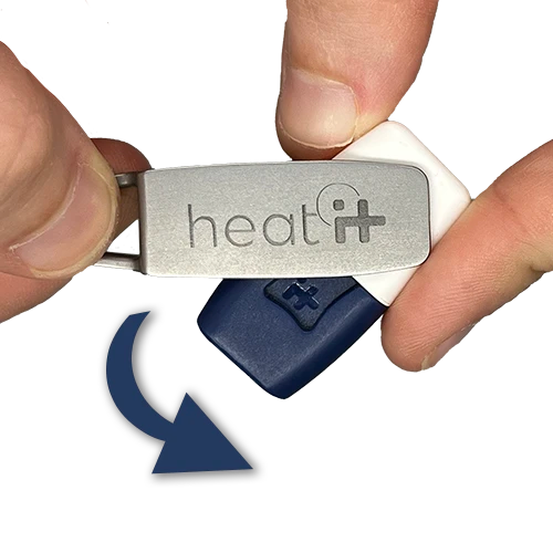 2) Rotate: After it has "clicked", the heat it® can simply be rotated out.